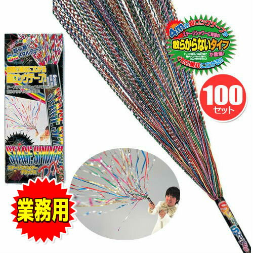 ステージシャワークラッカーに待望の【散らからないタイプ】が登場!6色の4m超ロングメタルテープがくもの巣状に広がる。